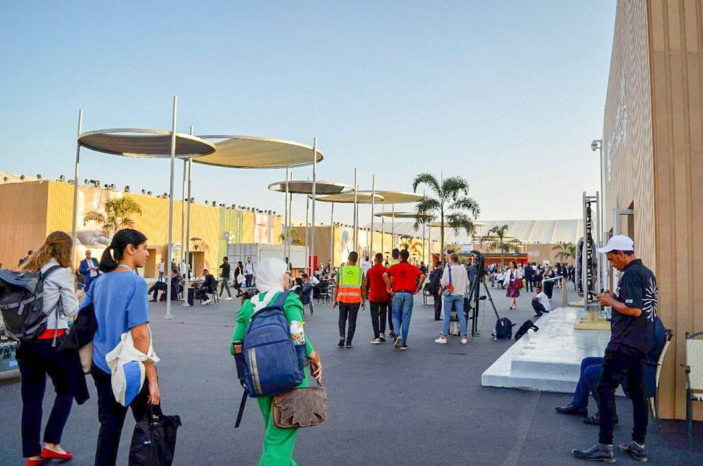 À la COP, s’entretenir avec les militant·es égyptien·nes pour le climat peut s’avérer compliqué. Beaucoup refusent de s’exprimer sur la situation des droits humains dans le pays, de peur d’être perçus comme critiques du gouvernement : « Je ne peux pas vous parler. Vous connaissez la situation ici », s’excuse une activiste. Une autre se désole : « Depuis 2013, c’est de pire en pire chaque année ».