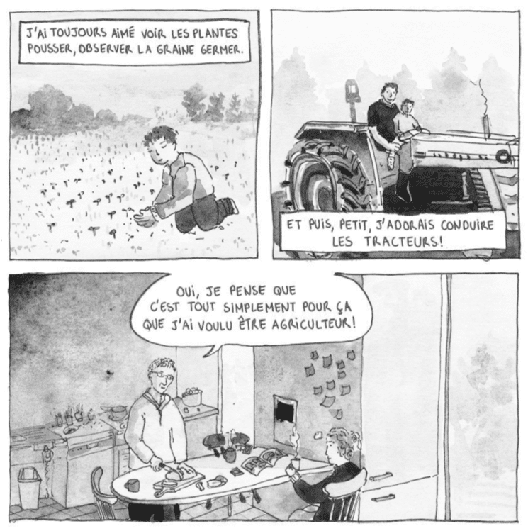 Un débat entre deux époques superbement illustré, où la volonté honnête de comprendre le point de vue de l’autre fait de cette bédé un objet rare. On appréciera particulièrement l’humour de l’autrice, la recherche de subtilités et l’amour qui se dégage du dialogue de papa et « minouche ». Une bande-dessinée en noir et blanc, qui réussit à mettre des couleurs dans la relation, écorchée, entre paysans et citadins. Parce que rien n’est jamais si simple que nos idées reçues et qu’il existe « cinquante nuances d’engrais ».