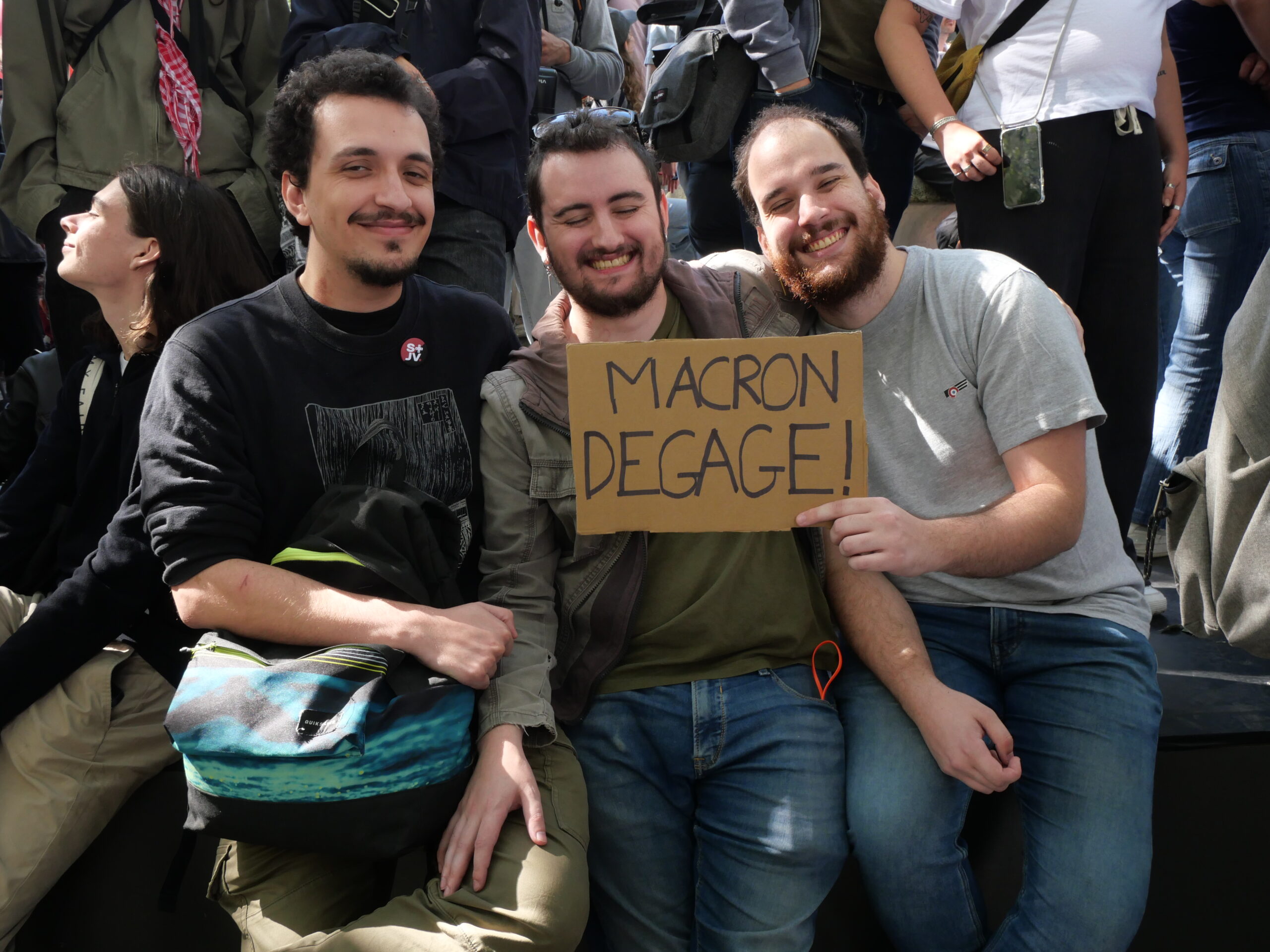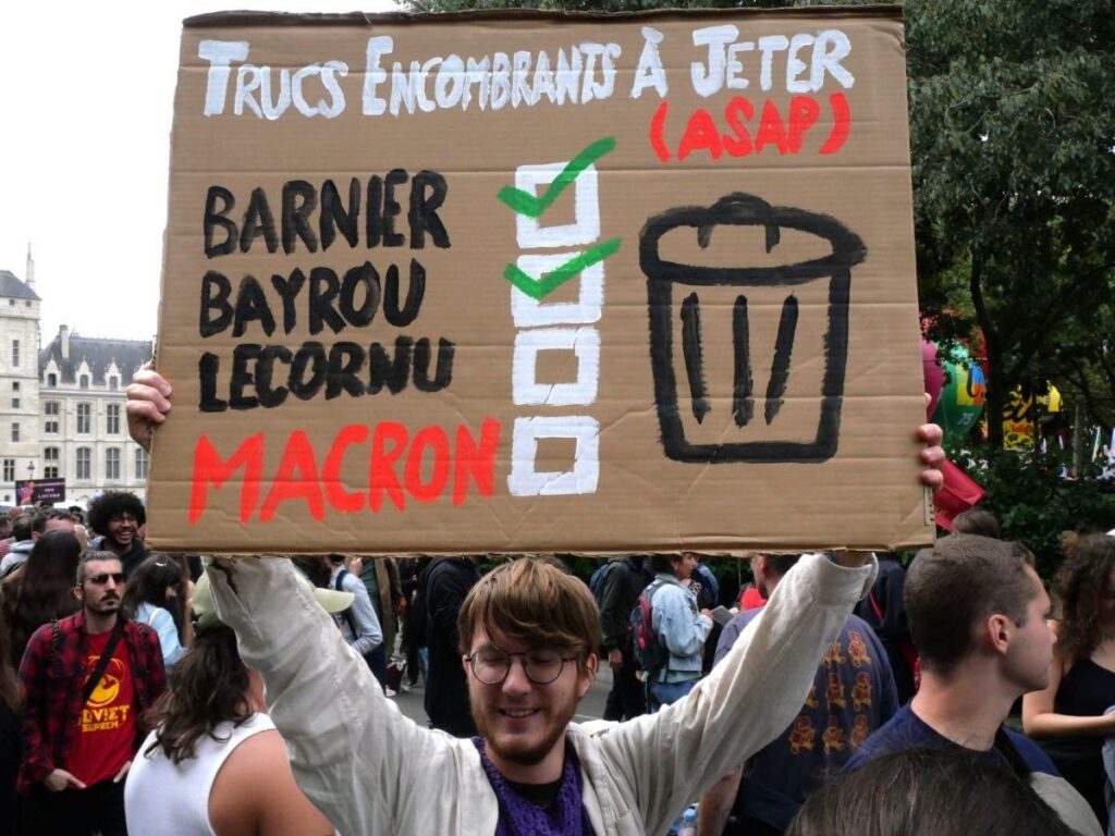 Étudiant en sciences de la Terre, il estime que «rien ne changera» si l’on reste «sous un gouvernement néo-libéral». Lui et ses ami·es étudiant·es qui participent à la manifestation craignent notamment le maintien en poste de Bruno Retailleau, ministre démissionnaire de l’intérieur : «C’est comme la moisissure dans le frigo, il va pourrir tout le reste !»