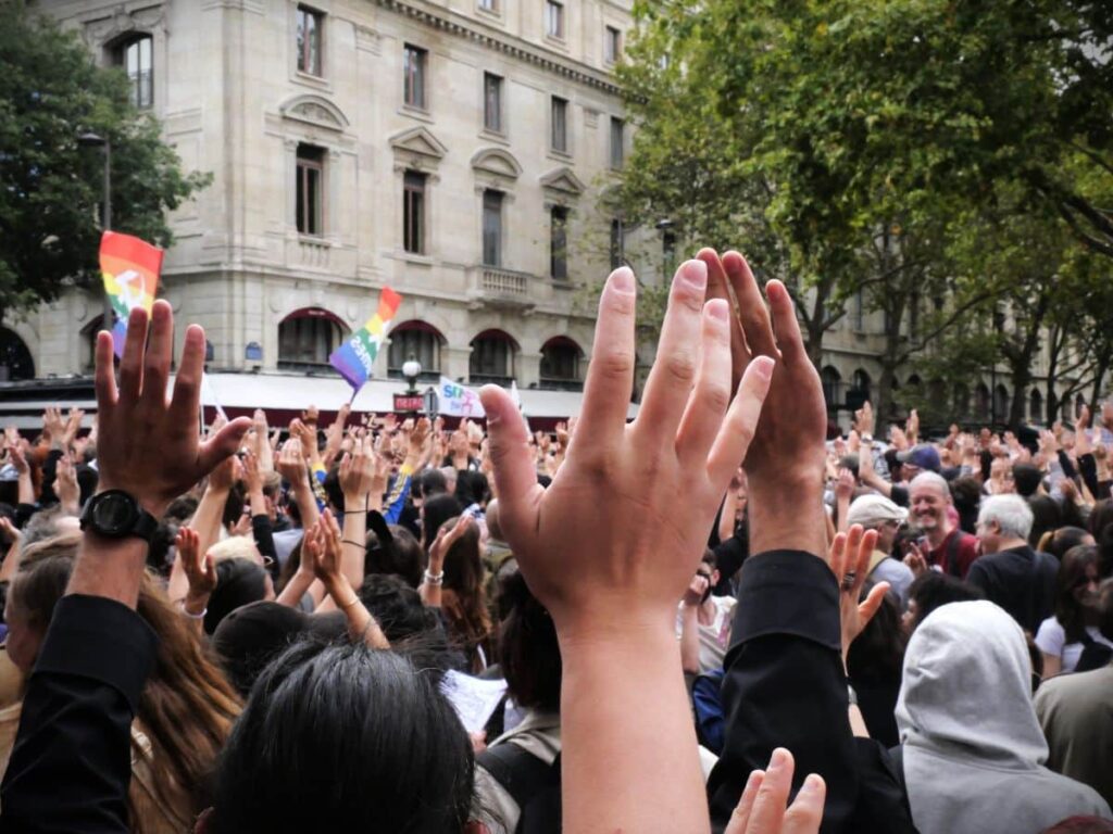 Alors que la foule s’épaissit au fil des heures et déborde largement de la place du Châtelet, plusieurs organisations de jeunesse tentent de ranimer l’ambiance à force de chants et de musique. Une ambiance festive et déterminée qui attire même certains touristes : «En Allemagne, la mentalité est différente, nous sommes plus calmes !», rit Thomas Link, venu visiter Paris pour quelques jours depuis sa Bavière natale.