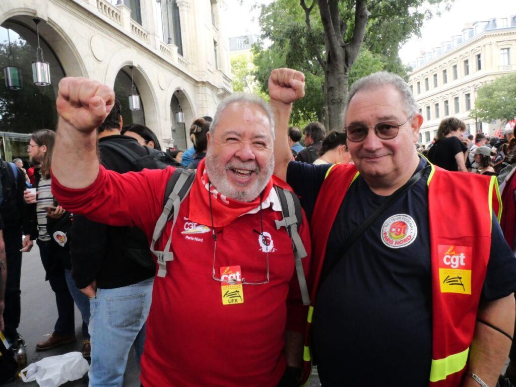 À ses côtés, son camarade Stéphane Gawsewitch, 57 ans, cheminot actif, le rejoint sur ce constat. Également syndicaliste à la CGT, il salue l’ambiance «bon enfant» du rassemblement de cet après-midi, qui contraste avec les «agressions de l’État policier» dont il dit avoir été témoin en début de journée, lorsque des CRS ont bloqué l’accès aux personnes extérieures qui souhaitaient rejoindre l’assemblée générale des cheminot·es organisée en gare du Nord – une «tentative d’intrusion» d’«un millier d’individus déterminés», selon la préfecture de police de Paris.