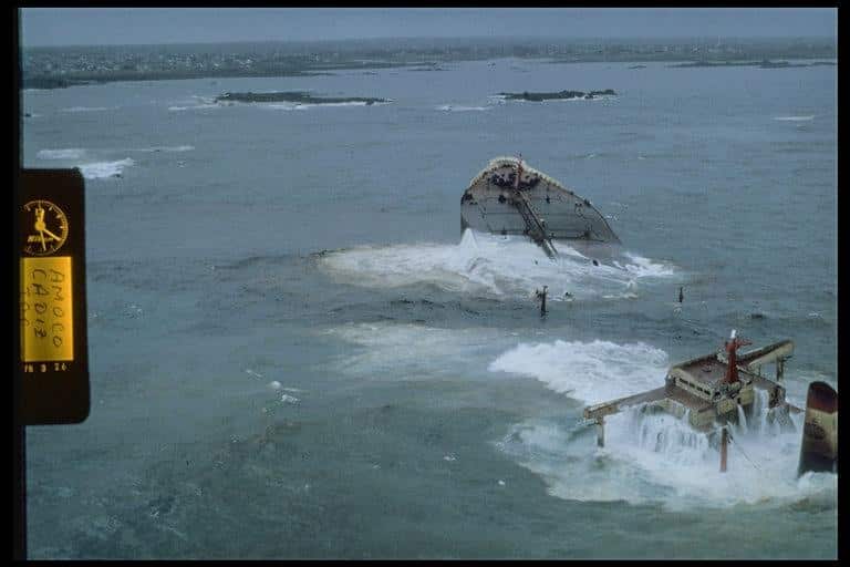 Ce 16 mars 1978, ce qui marque, c’est le silence de la mer. Les vagues sont recouvertes, étouffées, rendues muettes par un lourd pétrole brut. L’odeur est nauséabonde et infeste l’air ambiant sur une centaine de kilomètres à la ronde. Face à la commune de Portsall, au nord-ouest de Brest, un immense pétrolier domine l’horizon. En panne de gouvernail, l’Amoco Cadiz est venu se briser sur les rochers de Men Goulven. En quelques jours, près de 220 000 tonnes de pétrole brut se déversent du ventre de la bête de métal et souillent les rivages du Finistère et des Côtes-du-Nord (qui deviendront les Côtes-d’Armor en 1990).
