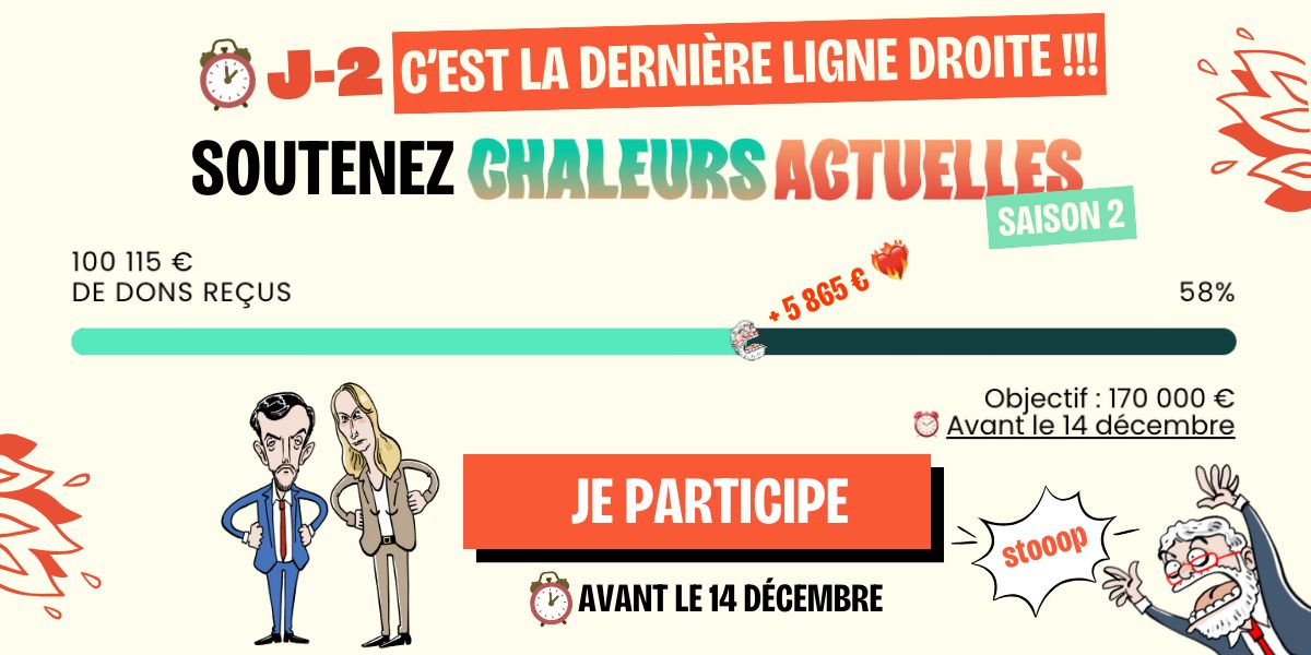 🔥 La campagne Chaleurs actuelles s’envole et vient de dépasser les 100 000 € de dons, c’est fou ! Un immense merci pour votre soutien 🫶
