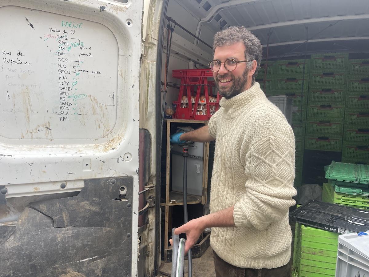 Dans son camion, Simon Ronceray stocke l’urine de ses client·es dans deux cuves dédiées. © Zoé Moreau/Vert