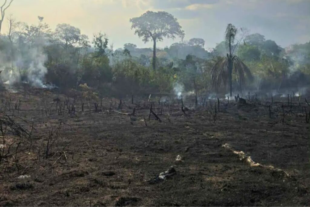 Un incendie intentionnel pour déforester, dans la réserve Chico Mendes. © Rogério Mendes