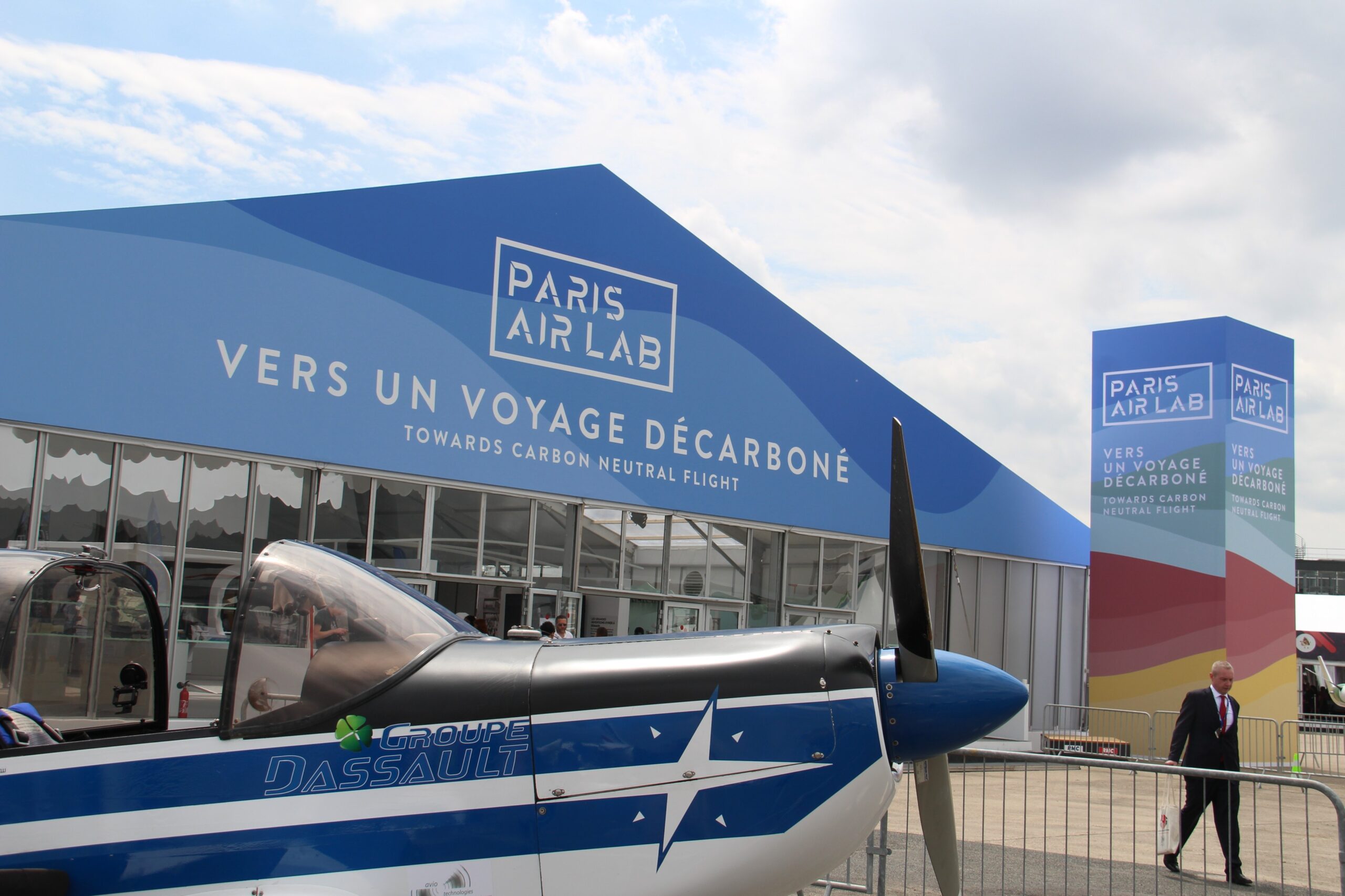 Sous les bruyantes démonstrations d’avions et à l’écart des terrasses où des contrats à sept chiffres se concluent arrosés de champagne, un petit espace du salon international de l’aéronautique affiche en grand le rêve du secteur : «Vers un voyage décarboné».