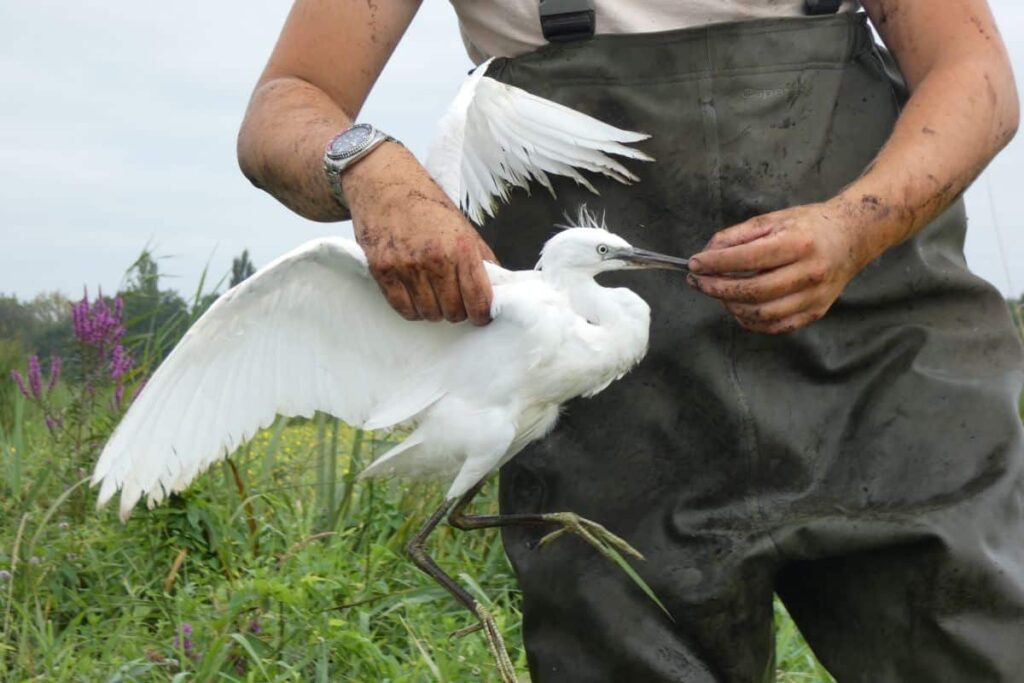 L’aigrette se cache dans un trou, transie, mais le chasseur réussit à l’attraper avec un râteau. Elle manque de lui crever un œil, il la pose dans un seau. «Elle ne va sans doute pas survivre», estime le technicien cynégétique. Quelques heures plus tard, la petite aigrette, les yeux stressés et le corps figé, meurt du botulisme.