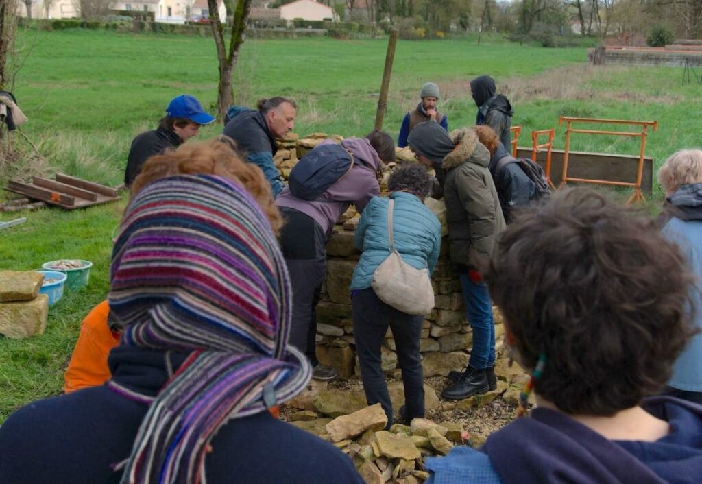 Le carillon de cliquetis d’un seau de remblais qui s’élève par-dessus une épaule pour combler le cairn couvre à peine les conversations des participant·es au rassemblement. Les cafés refroidissent dans des gobelets rouge «No bassaran» à force de se raconter et de (re)raconter les deux ans écoulés. Beaucoup décrivent ce «petit K.O.» post-manif, période de quelques heures à plusieurs semaines sans émotion ni énergie, qui a poussé certain·es à s’éloigner de Sainte-Soline, du Poitou, voire de la lutte sous toutes ses latitudes.