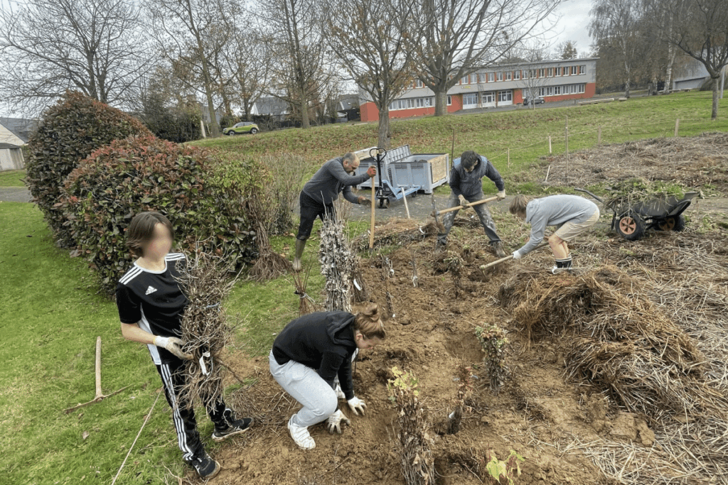 Chaque année, le lycée Saint-Joseph travaille sur un thème (alimentation, biodiversité, eau, solidarité, déchets…) et le décline en divers projets éducatifs menés par des élèves. En 2023, des lycéen·es ont donné naissance à une micro-forêt au sein de l’établissement. «Nous avons introduit 550 arbres et arbustes sur une surface de 200 mètres carrés, avec des essences locales du massif armoricain choisies avec une pépinière du coin», raconte à Vert Camille Launay, assistant d’éducation et responsable de la micro-forêt.