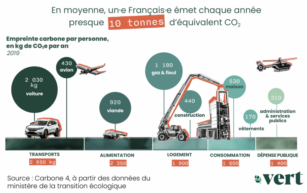Le détail de l’empreinte carbone annuelle moyenne d’un·e Français·e en 2019