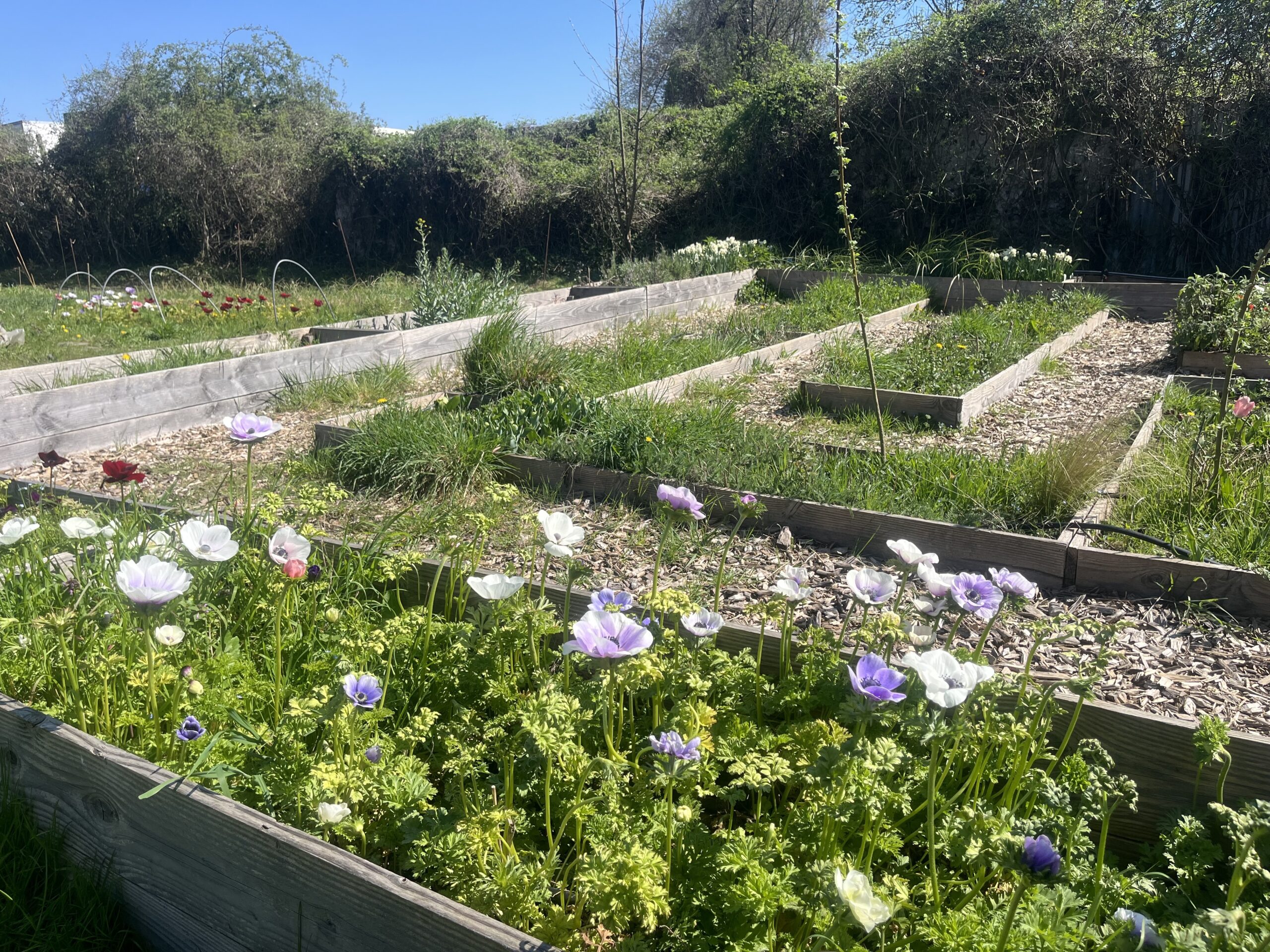 Car, aux Murs à fleurs, tout est fait «à l’ancienne». Les plantations sont nourries au compost bio, au purin d’ortie, de presles ou de consoude. Préservées des aléas par des techniques comme le paillage de blé, qui permet de réguler la température du sol sans utiliser de serre. Et vivent à l’air libre. Seuls les semis grandissent – pour un temps – dans la pépinière ou la serre, dans des bacs «chauffés avec du fumier de cheval, récupéré dans un poney club du Val-de-Marne», poursuit Sophie Jankowski.