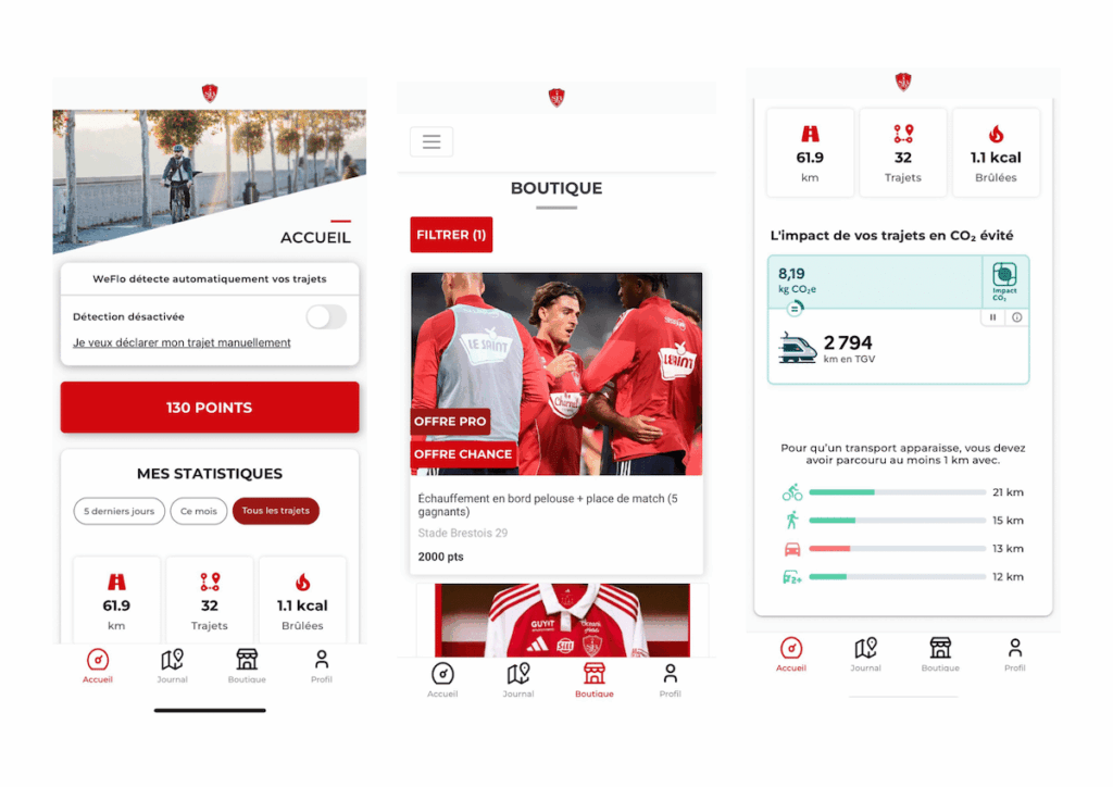Assis sur les marches en béton du stade Francis-Le Blé, Jérémy, trentenaire aux cheveux bleus et supporter de toujours du Stade Brestois, ouvre fièrement sa veste : «Ce maillot du club, je l’ai eu grâce au covoiturage.» Depuis janvier, le club de football professionnel de Brest (Finistère) teste une nouvelle stratégie pour inciter les supporter·ices à utiliser les mobilités douces. L’application Weflo, développée par la start-up nantaise Transway, est au cœur de cette initiative.