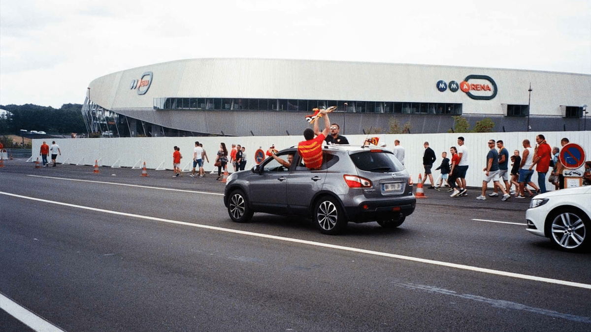 Des supporter·ices du Mans (Sarthe) se rendent au stade. © Stadium Go