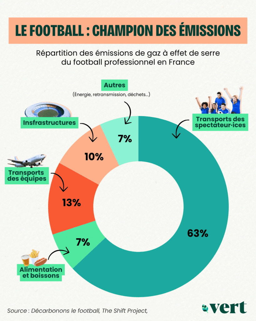 Encore balbutiants, les efforts engagés par le football professionnel amorcent doucement la trajectoire vers un football plus durable. Selon le Shift Project, 85% des émissions liées au déplacement des spectateur·ices pourraient être évitées… à condition que les clubs et les fans jouent vraiment collectif.