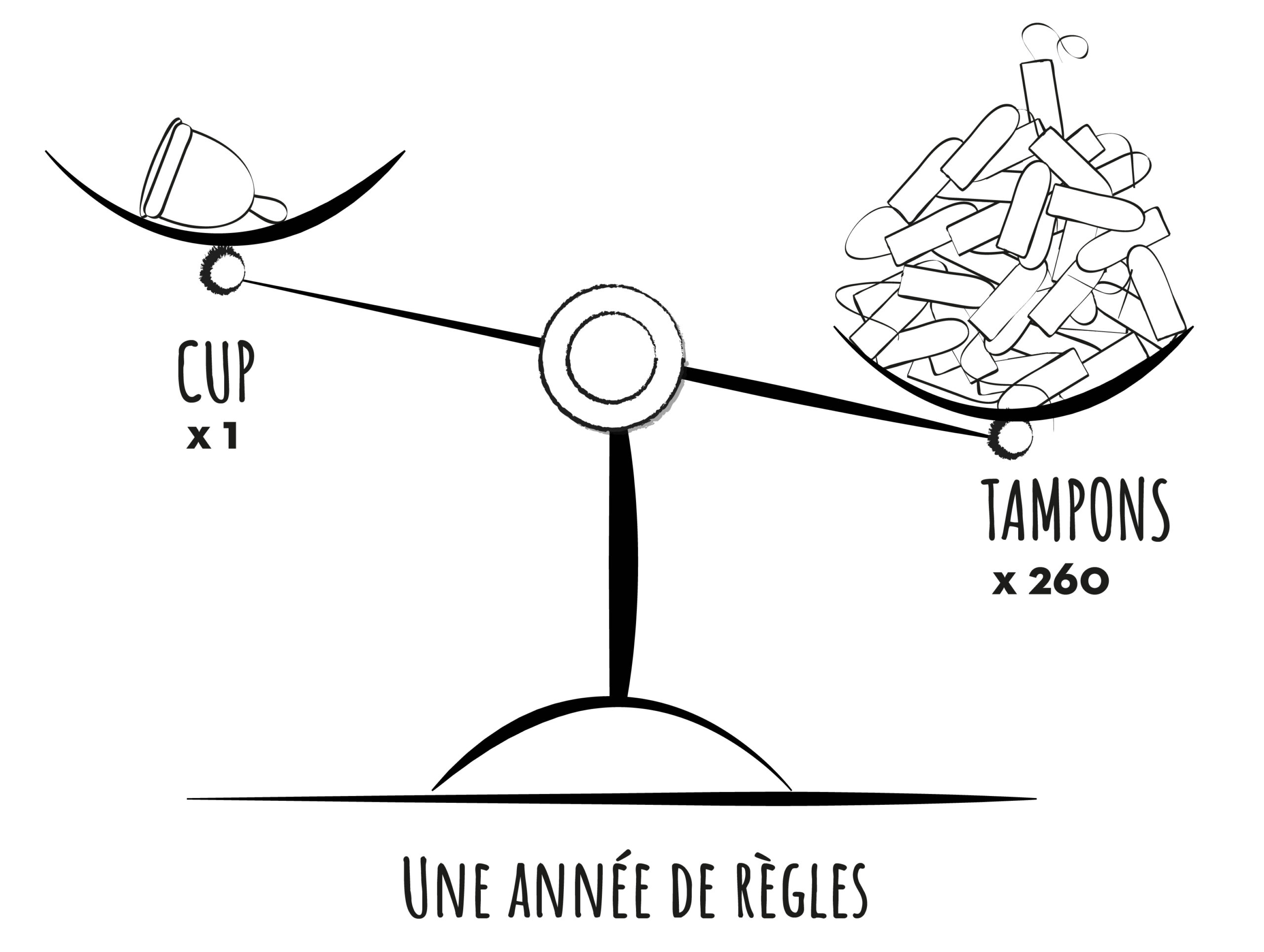 Quantité moyenne de cups ou de tampons utilisés pour une année de règles © Ecolo mon cul, 14 dilemmes du quotidien pour aller au-delà du bullshit écologique.