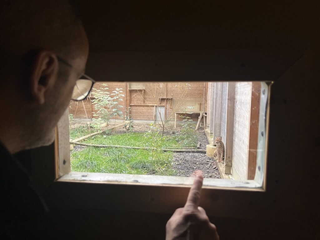Tout en scrutant son téléphone pour surveiller une éventuelle alerte, Gilles Moyne nous emmène dans un vaste hangar en bois protégé par de grandes barrières. C’est dans ce bâtiment construit en 2019 que se reposent, à l’abri des regards, les deux jeunes lynx. Armés de grandes épuisettes et de gants de protection, lui et deux autres soigneuses attrapent – non sans mal – les très agiles félins. Il et elles les placent dans deux grands sacs puis dans des caissons de transport, avant de foncer en voiture direction la clinique vétérinaire.