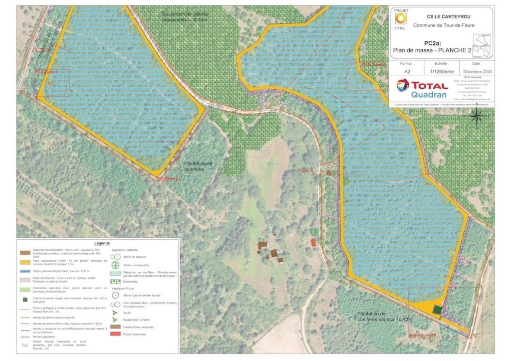 Cette bourgade de 330 habitant·es est située en contrebas de Saint-Cirq-Lapopie, labellisé «Plus beau village de France» en plein cœur du Parc naturel régional (PNR) des Causses du Quercy, lui-même classé à l’Unesco pour sa richesse géologique. La multinationale compte ainsi raser 19 hectares de bois et pelouses sèches – l’équivalent de 26 terrains de foot – et sacrifier 7 000 arbres anciens. Les 44 000 «ombrières solaires» seront placées en hauteur, afin que des brebis puissent entretenir le parc.