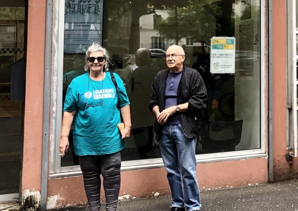 Elles et ils font partie des habitant·es qui étouffent l’été dans leur appartement, soit 42% des Français·es, selon un récent rapport de la Fondation pour le logement des défavorisés. C’est cette cause que plaident Gérard et Michèle, porte-paroles de Locataires Ensemble. Cette dernière habite dans un logement sans ventilation mécanique contrôlée (VMC) ni volets, que son immeuble en béton armé transforme en étuve. Arrivé·es devant l’OPH, les deux porte-paroles sont reçu·es par le directeur général.