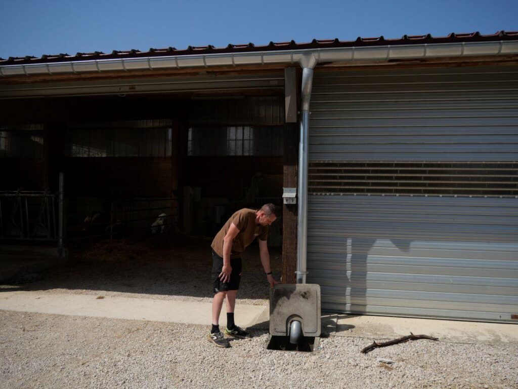 Comme de plus en plus d’exploitations dans la région, la ferme Dromard a également installé deux systèmes de récupération de l’eau de pluie : les gouttes qui tombent sur les toits des bâtiments ruissellent dans des chéneaux, puis sont conduites dans deux grands cuves souterraines, où elles pourront ensuite être traitées avant d’être utilisées pour le nettoyage de la salle de traite. Une manière de réduire la facture d’eau potable, mais aussi de sécuriser l’approvisionnement de cette ressource précieuse.
