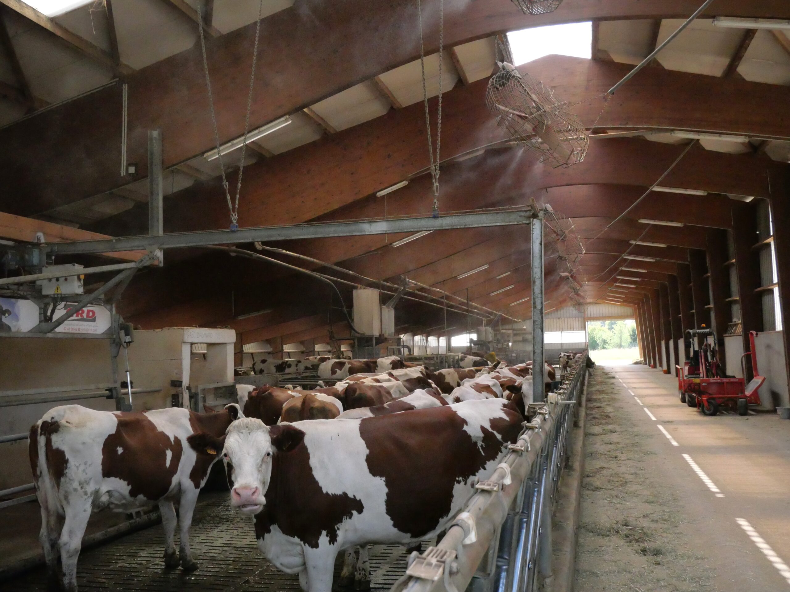 Quant aux solutions de court terme face à la canicule, elles sont globalement les mêmes : les animaux sont gardés la journée à l’ombre dans l’«écurie» (le nom donné à l’étable des vaches dans la région), qui a été reconstruite avec un bardage en bois laissant passer l’air. Des brumisateurs ont également été installés en salle de traite lors de la dernière vague de chaleur fin juin, aussitôt plébiscités par les vaches, qui s’agglutinent à l’entrée lorsque ces derniers sont déclenchés pour démarrer la traite du soir.