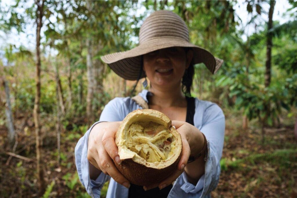 Fruit d’un cupuaçu, arbre proche du cacaoyer et originaire d’Amazonie. © Nolwenn Jaumouillé/Vert