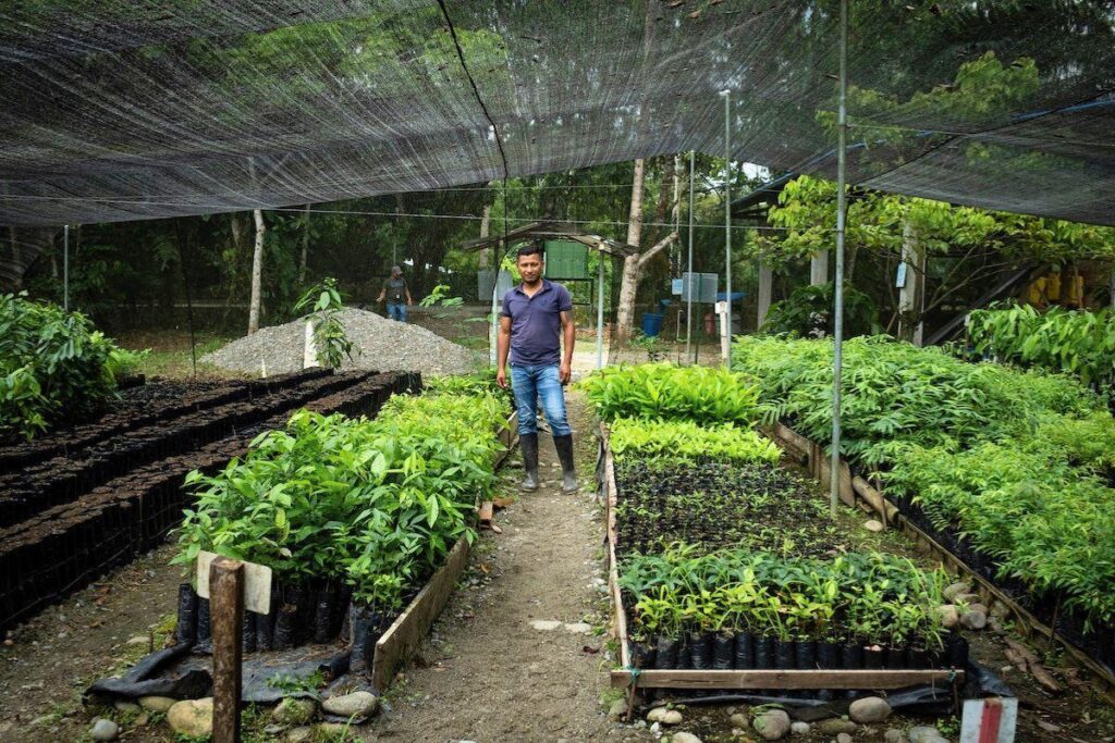 Armando Aroca Sanchez, représentant légal de la coopérative Comuccom, dans la pépinière. Menacé, il vit désormais dans une autre région du pays avec sa famille et ne revient qu’occasionnellement.  ©Nolwenn Jaumouillé/Vert