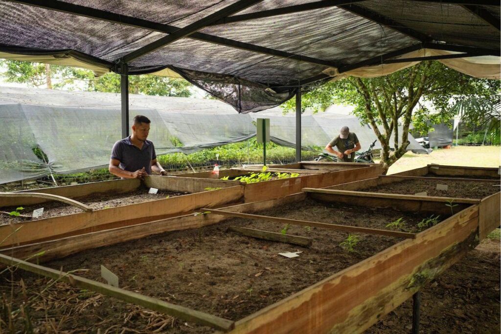 Avec l’aide du Programme des nations unies pour le développement (PNUD), la Comuccom a impulsé la création d’un réseau de pépinières dans quatre départements du pays, au cœur de l’arc de déforestation de l’Amazonie colombienne. Composé de dix organisations paysannes et d’ex-combattant·es, le réseau ambitionnait en 2021 de planter un million d’arbres en dix ans. Or, «nous en sommes déjà à 680 000, ce sera donc beaucoup plus !», sourit Armando Aroca Sanchez.
