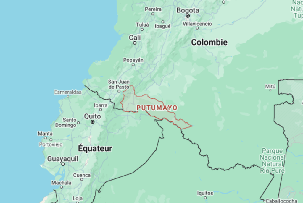 La région du Putumayo, où se trouve Puerto Guzman et la Comuccom. © Google maps