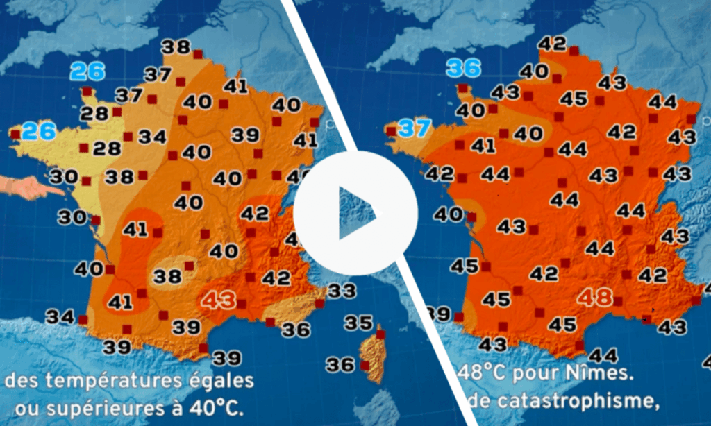 Cliquez pour voir le bulletin météo réalisé par Évelyne Dhéliat, et qui compare les prévisions de 2014 et 2022 pour l’été 2050. © TF1