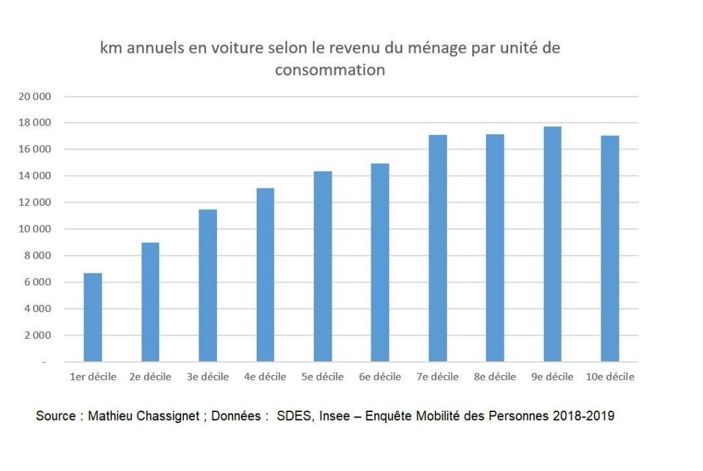 Ce coup de pouce « n’est pas ciblé sur ceux qui subissent le plus gravement les conséquences de la hausse des carburants en termes d’inégalités sociales et territoriales », a ainsi déclaré Delphine Batho, porte-parole de l’écologiste Yannick Jadot. Et pour cause : une remise de 15 centimes par litre sur le carburant (alors que le prix du litre de sans-plomb dépasse allègrement les 2€ dans la plupart des stations-service françaises) bénéficiera en définitive davantage aux plus aisés. En effet, plus on est riche, et plus on parcourt de kilomètres. C’est ce qu’a révélé la dernière « Enquête mobilité des personnes » de l’Insee, publiée en janvier 2022 (notre décryptage).