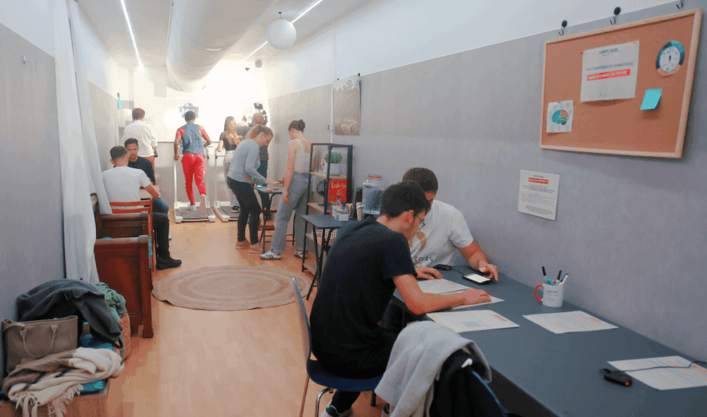 Quand je pénètre dans la cabine, c’est comme si j’entrais dans une soufflerie géante. Les premières secondes, ma respiration se coupe. Puis, je sens mon corps s’habituer peu à peu. On m’a prévenue : au cours des trente prochaines minutes, je vais d’abord faire une activité physique sur un tapis de course ou un vélo pour simuler un trajet domicile-travail, puis faire des jeux d’adresse et de réflexes, et enfin, répondre à un questionnaire de logique pour tester mes capacités cognitives.