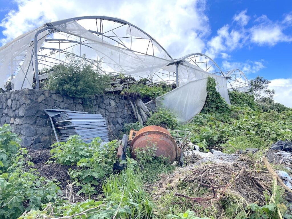 «J’avais 50 000 pieds de fraises, j’ai tout perdu, déplore l’agriculteur installé depuis 20 ans à La Plaine-des-Cafres, sur les hauteurs de l’île. Et sur les 2 000 pieds de tomates que j’avais plantés, seulement 800 ont survécu». Devant lui, il ne reste presque plus rien des bâches qui recouvraient ses serres, et la structure métallique s’est totalement affaissée.