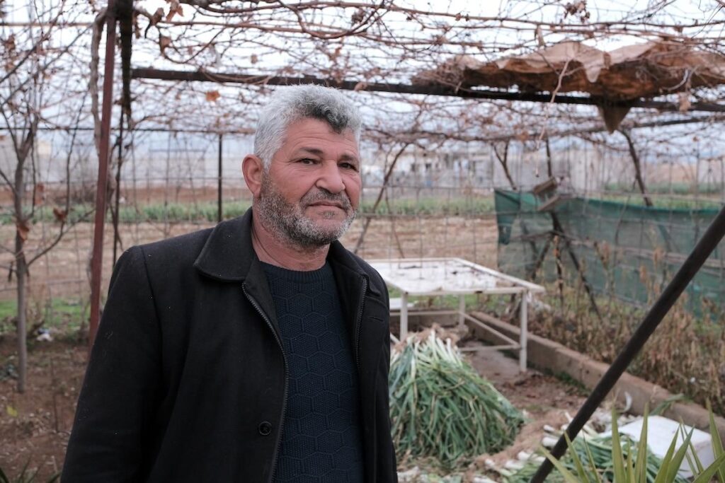 Issa Mustafa Al-Masri loue sa parcelle de terre et vit ici avec sa famille. À partir de 2012 et ce pendant sept ans, ils ont vécu les bombardements du régime. La famille se mettait à l’abri dans les sous-sols de bâtiments, à quelques centaines de mètres du champ. «Il y avait des frappes aériennes. Nous ne pouvions pas accéder notre terre», se remémore le paysan dans le salon familial. Son épouse, Amira, renchérit : «Nous ne pouvions même pas traverser la rue de notre maison !» La famille possédait aussi 200 moutons, qui ont tous été tués pendant la guerre.