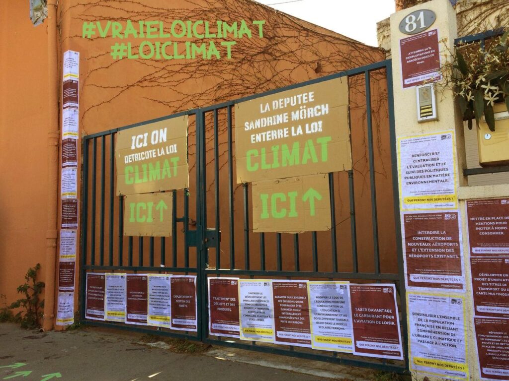 Copier-coller ! En marge de l’examen du projet de loi « climat et résilience », des militant•e•s écologistes ont rappelé à leur députée le contenu des mesures proposées initialement par la Convention citoyenne pour le climat (CCC).