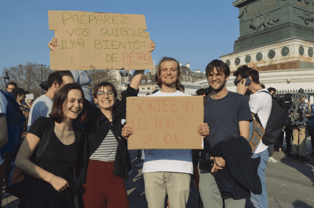 Pour Savannah et Étienne, étudiant·es à Science Po Paris, la grève prend d’autant plus de sens à l’approche de la présidentielle. Tou·tes deux sont frustré·es par l’inaction du gouvernement alors que « les solutions existent ». La jeune femme voudrait par exemple « arrêter de fermer les petites lignes de train et investir dans les transports publics pour qu’ils soient accessibles à tous ». La question des mobilités s’est d’ailleurs invitée dans la grève scolaire, avec la publication d’un communiqué commun de Youth For Climate et des syndicalistes Solidaires du groupe RATP. Plusieurs intervenant·es ont affirmé la complémentarité entre la grève pour le climat et celle des employés des transports en commun parisiens le même jour, qui avait pour but de protester contre l’ouverture à la concurrence afin que les transports restent un service public.