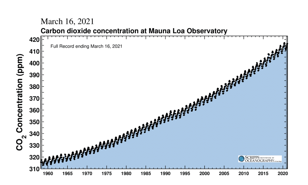 Pendant quelques jours, entre février et mars derniers, le taux de CO2 a dépassé 417 parties par million (ppm), rapporte Carbon Brief. Une concentration 1,5 fois plus élevée qu’à l’ère pré-industrielle, stable à 278 ppm jusqu’à la fin du 18e siècle.
