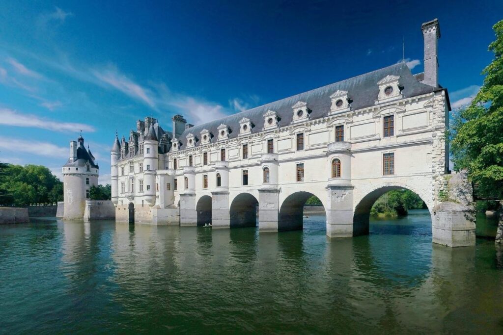 En Indre-et-Loire, entre le Cher et la Loire, le château de Chenonceau – aussi appelé «le château sur l’eau» –, joyau de la Renaissance, est le monument de la vallée de la Loire le plus admiré, après Chambord. Chaque année, plus de 900 000 visiteur·ses observent sa galerie à deux étages qui enjambe le Cher, souhaitée par Catherine de Médicis.