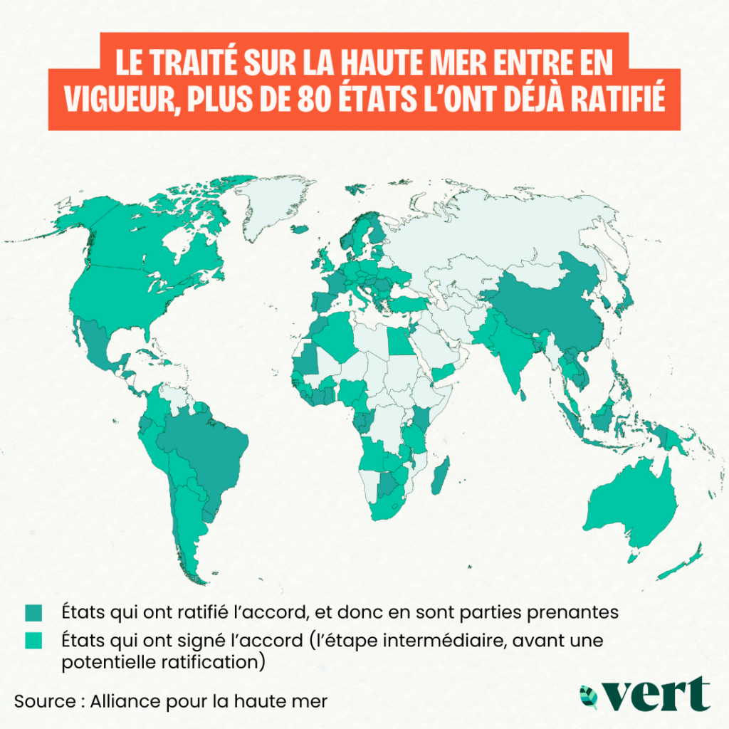 «Plusieurs obligations juridiques s’appliquent dès aujourd’hui, bien que certaines dépendent de la mise en place des institutions et mécanismes du traité», explique l’Alliance pour la haute mer. Concrètement, toute activité susceptible d’affecter la haute mer (projets d’extraction, d’aquaculture, de géoingénierie…) doit désormais faire l’objet d’une étude d’impact environnemental, et les États concernés doivent rendre les conclusions publiques.