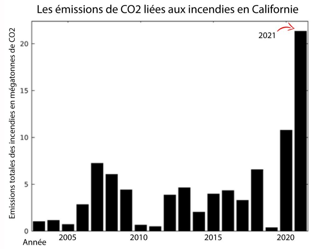 En Californie, ravagée par le plus important feu de son histoire – le Dixie Fire, et dans la république russe de Sakha, située au nord-est de la Sibérie, les émissions sont deux fois supérieures au précédent record, qui date seulement de 2020. En à peine deux mois, plus de 2,6 gigatonnes (milliards de tonnes) de CO2 ont ainsi regagné l’atmosphère, aggravant encore un peu plus l’effet de serre à l’origine du réchauffement planétaire. A titre de comparaison, la totalité de l’humanité en a rejeté 36 gigatonnes en 2019.