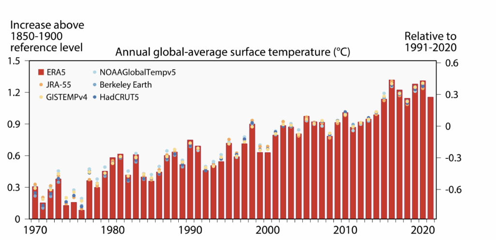 C’est chaud. Malgré le sentiment d’une année froide ressenti par certain·es en France, 2021 fut l’une des années les plus torrides pour la planète depuis les premiers relevés, selon Copernicus.
