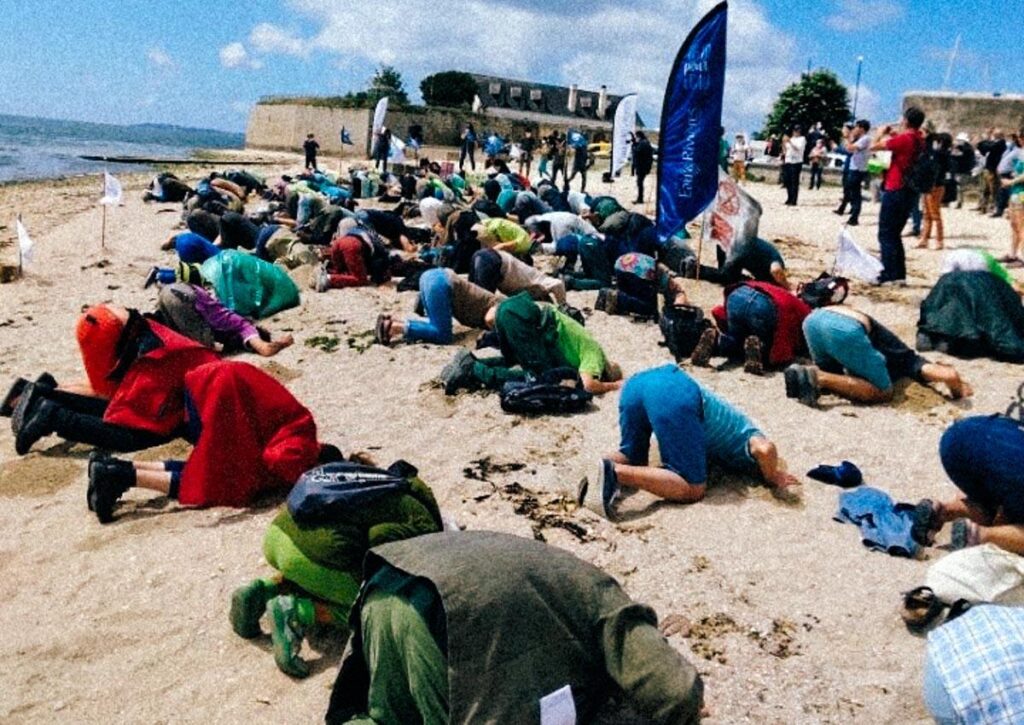 Le jugement est tombé la veille d’une manifestation à Lorient au cours de laquelle des manifestants ont mis la tête dans le sable pour dénoncer l’immobilisme de l’Etat ©Eau & Rivières de Bretagne