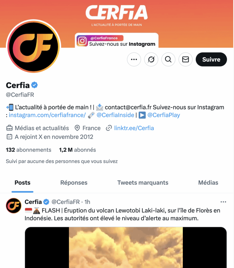Lundi, plusieurs utilisateur·ices de X ont annoncé le rachat du compte d’actualités Cerfia — au plus d’1,2 million d’abonné·es sur le réseau — par le milliardaire d’extrême droite Pierre-Édouard Stérin (notre portrait). Le premier post trouvé par Vert qui relaye l’information est celui du compte @ambroise_leroy. Son info, partagée par des concurrents directs du compte d’actualités comme Mediavenir et AlertesInfos, a fait perdre à Cerfia 50 000 followers en moins de 24 heures. Pourtant, cette nouvelle ne date pas de lundi. On rembobine.