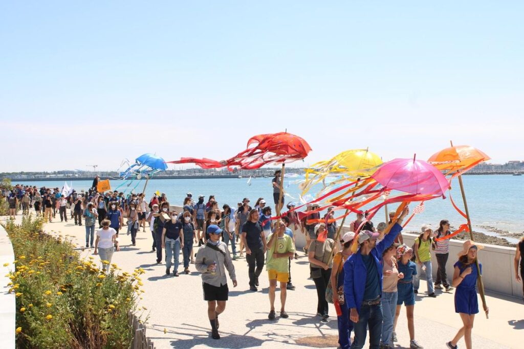 Vers 10 heures, le reste des manifestant·es rejoint La Rochelle pour former deux cortèges : l’un, familial, l’autre, «déter». Quand le premier longe la côte de la ville en danse et en musique jusqu’à atteindre la cale du Port Neuf, le second se frotte aux forces de l’ordre avec de nombreux affrontements, dégradant du mobilier urbain et un petit Super U.