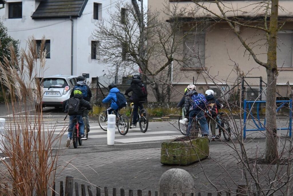 La sonnerie de 16 heures vient tout juste de retentir. Un groupe de CM2, en selle, discute devant le portail avant de rentrer à la maison. «On vient tous les jours à vélo. En passant par la piste cyclable, c’est tranquille. Et puis ça coûte aussi moins cher à nos parents que de payer l’essence», affirment Milan et Naël, 10 ans tous les deux.