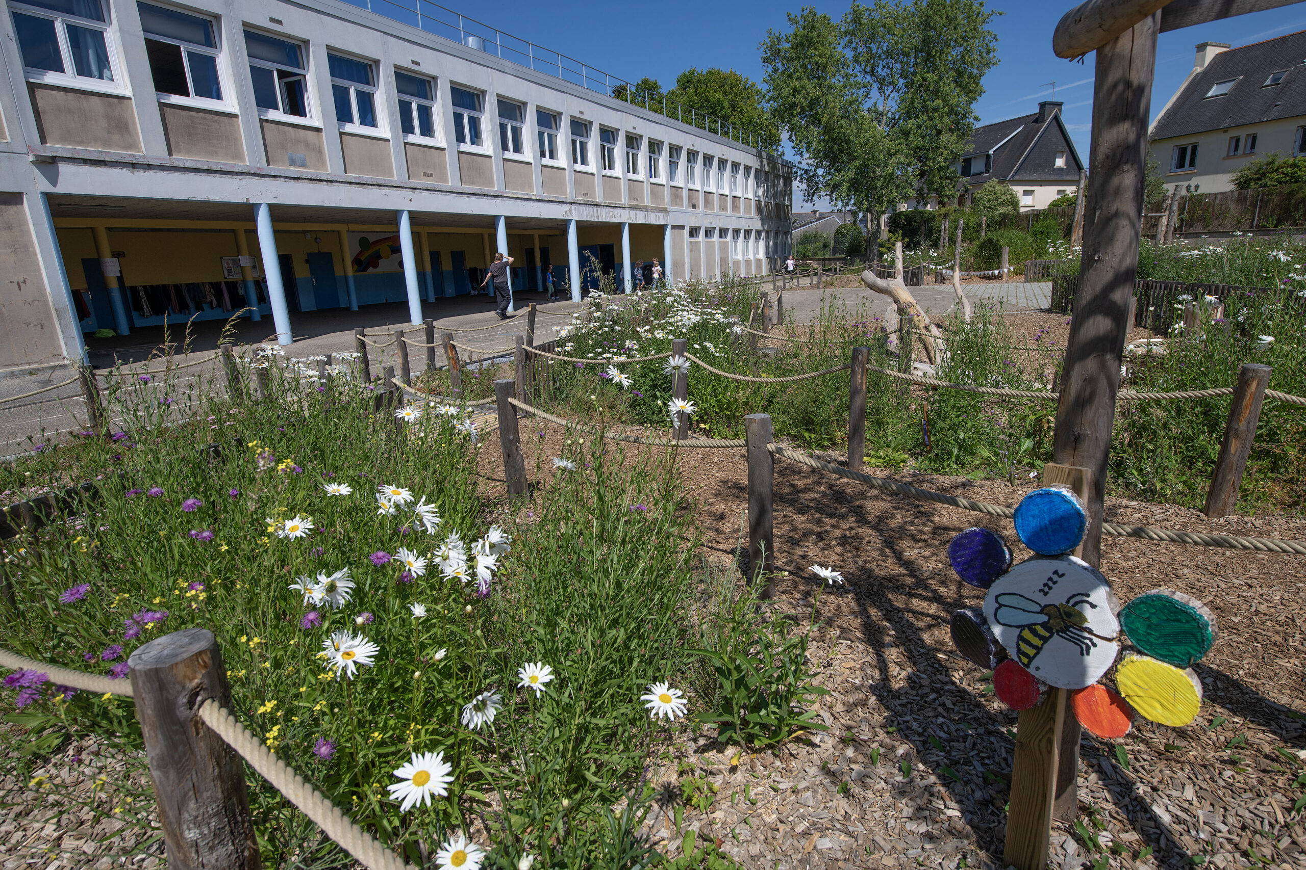 À Quimper (Finistère), la mairie socialiste a lancé un plan de végétalisation des cours d’écoles publiques avec les enfants. Depuis 2020, six cours (sur 19) ont été désimperméabilisées et réorganisées avec des plantations de végétaux, des copeaux, des troncs d’arbres, des cabanes en osier… «Ce n’est pas juste enlever le bitume, prévient Valérie Huet Morinière, adjointe à la végétalisation. C’est aussi une réflexion sur les usages genrés dans la cour, on interroge les enfants sur l’usage du ballon pour que chacun trouve sa place.» Ateliers de concertation, plantations, animations… Les élèves sont associé·es tout au long du projet, explique-t-elle : «On embarque les enfants, les enseignants, mais aussi les agents de la ville, on a un bel enthousiasme !»