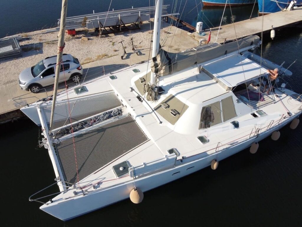Douze personnes, c’est la capacité maximale définie par les règles maritimes internationales pour un transport de passager·es aux contraintes allégées (pas de contrôle douanier à l’embarquement, ni d’embarquement et de débarquement dans une grande gare maritime potentiellement éloignée du centre-ville). «Quand ils voyagent écologiquement, les passagers ont besoin d’une liaison d’un cœur de ville à l’autre, afin d’accéder à la gare à pied, notamment», justifie Andrew Simons, fondateur de SailLink. Il a donc fait le choix d’un Lagoon 57, un catamaran de près de 17 mètres qui peut s’amarrer dans les ports de plaisance, souvent plus proches du centre-ville.