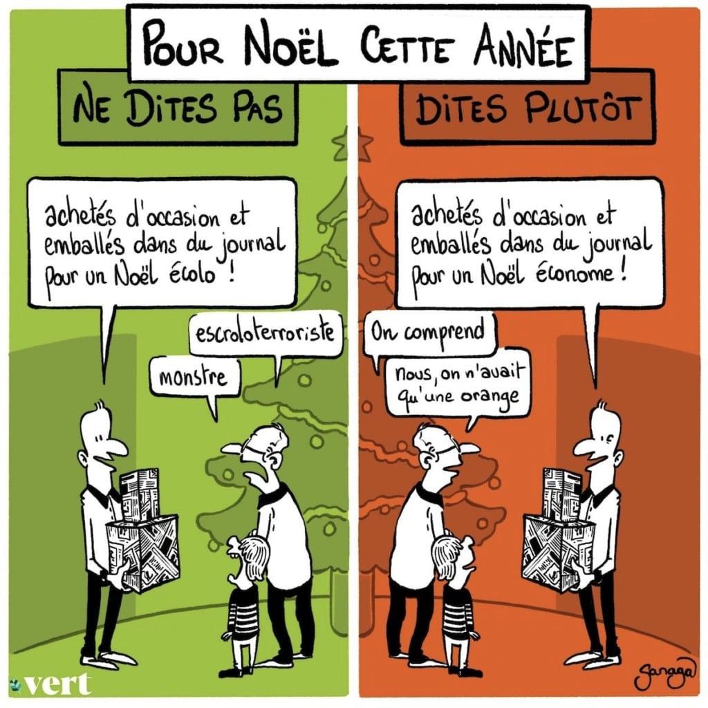 Pour Aurélie, la «bataille, c’est les jeux d’occasion pour les enfants pour éviter la surconsommation.» Elle explique à Vert : «Je demande à mes proches d’acheter d’occasion plutôt que neuf, ça engendre forcément une discussion sur la consommation.» Un autre moyen de parler écologie à Noël, que vous êtes plusieurs à mentionner.