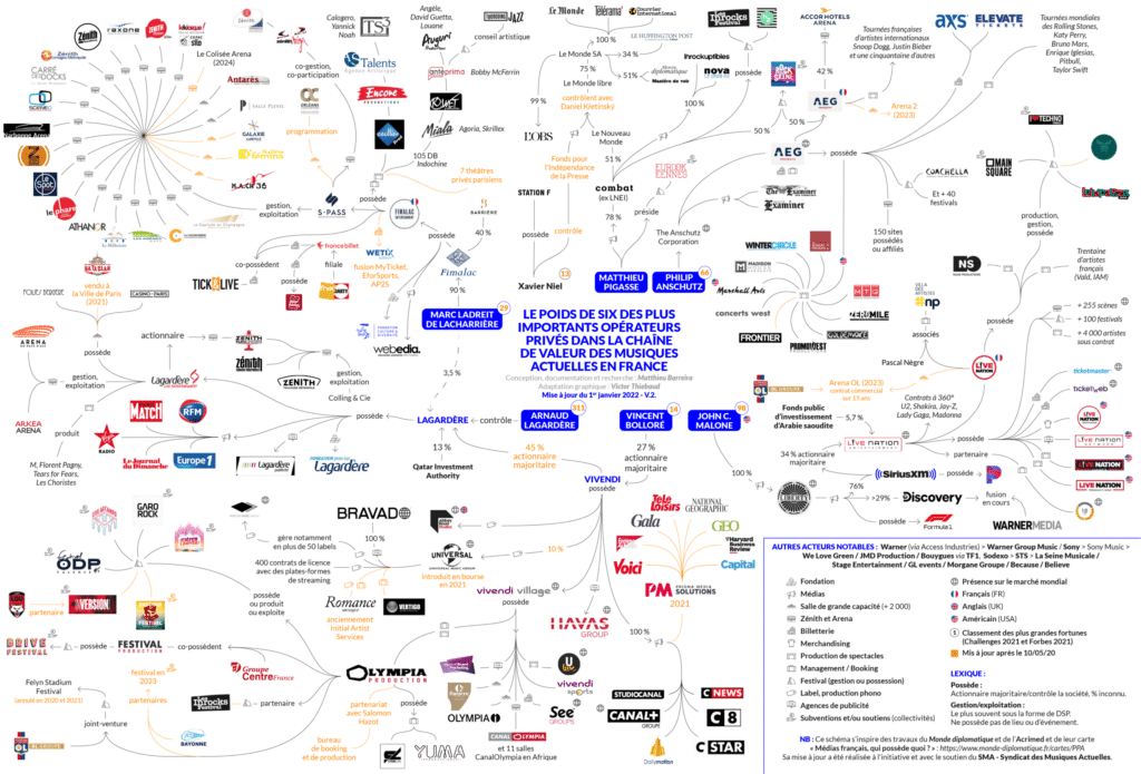 Derrière la question des difficultés liées au contexte sanitaire, c’est celle du modèle économique et de la résilience des festivals indépendants qui se pose. Ces derniers font face à la concurrence des mastondontes qui sont la propriété de milliardaires comme Arnaud Lagardère ou Vincent Bolloré. Leurs groupes règnent en maîtres sur nos oreilles : des labels de musique aux chaînes de radio, ils disposent d’une puissance financière et médiatique de taille. Par exemple, Brive festival est indirectement détenu par Vincent Bolloré et son groupe Vivendi.