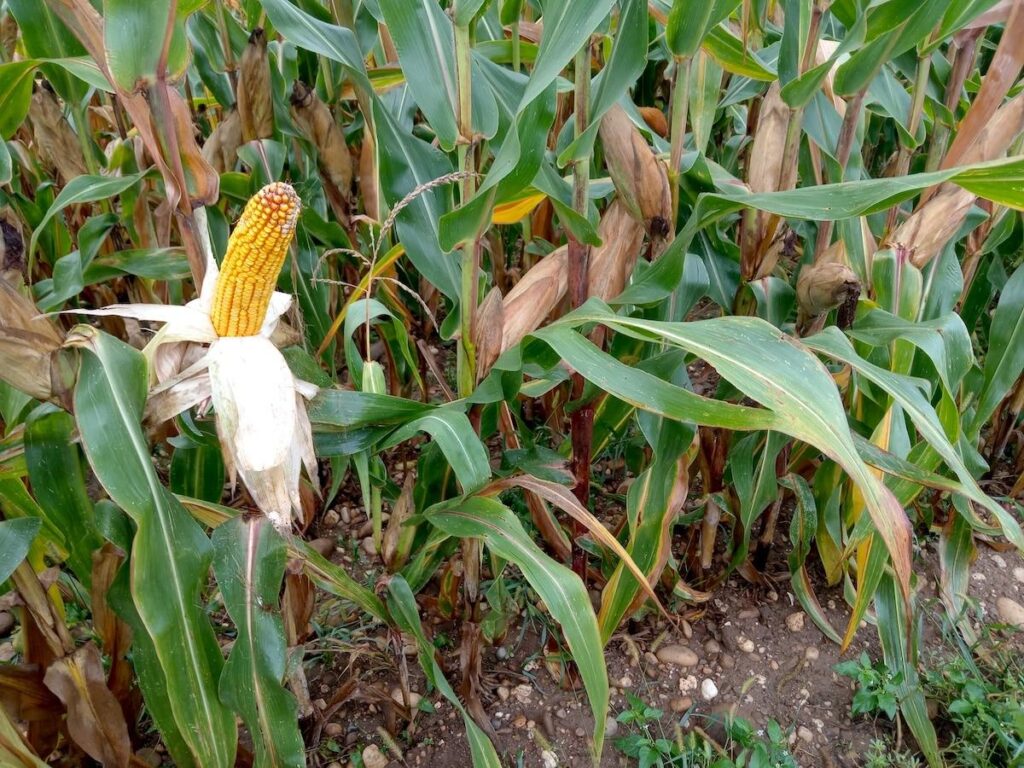 Entre deux rangs de maïs à hauteur d’adulte, Stéphane Mojon se laisser aller à la satisfaction. «Ils ne sont pas vilains cette année, avec l’été qu’on a eu», savoure cet agriculteur, peu loquace, tout en glissant une belle panouille – un épi de maïs – dans sa poche. En cette matinée de septembre, cet exploitant installé à Villette-d’Anthon, à la frontière entre le Rhône et l’Isère, inspecte une parcelle sur laquelle un test de désherbage mécanique a été effectué au printemps par une entreprise de travaux agricoles.