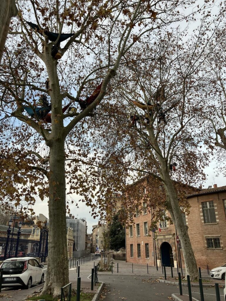 Mercredi, à la veille de l’audience, une dizaine d’«écureuils» se sont installés dans les platanes dominant le tribunal administratif. Figures emblématiques du mouvement anti-A69, ces personnes qui grimpent aux arbres prévoient de passer la nuit (voire peut-être plusieurs) harnachées à 15 mètres du sol. Le soir venu, reggae en fond sonore, ils confient à Vert se sentir, malgré tout, animés d’une «positive vibration». À la question : «Quand prévoyez-vous de redescendre ?», ils répondent, imperturbables : «Quand tout sera re-naturalisé.»
